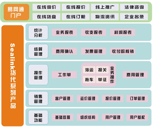 一、产品概述 “SeaLink”是易网通物流网着力推出的一款专业为国际货代物流企业提供全程业务信息管理、订舱协作的平台型货代系列软件产品。产品基于“物流云”的设计理念,集成了货代企业内部信息管控和易网通门户网站在线订舱协作两大系统,实现了与客户、同行之间信息的无缝化整合,倡导物流服务的流程化、标准化和透明化,让物流企业拥有一站式物流电子商务服务与管控的能力,打造企业核心竞争力,进而真正帮助货代企业在易网通物流网在线揽货、轻松管控物流业务、与合作伙伴开展协作。